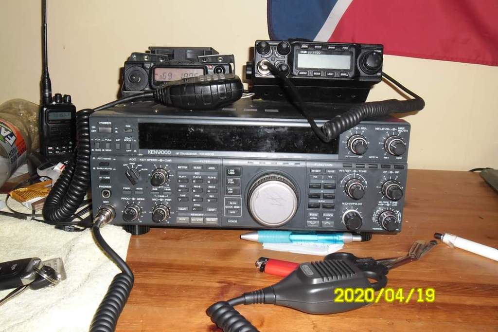 Här ser vi en maskinpark bestående av Kenwood ts 850s, crt ss 9900 , Any tone 555. antenner 1 st antron 99 & en cxl 4